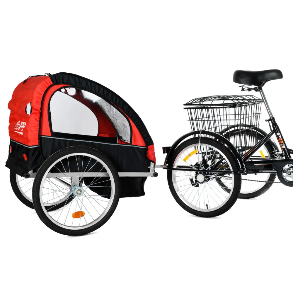 Совместим с трёхколёсными велосипедами для взрослых и обычными двухколёсными моделями.