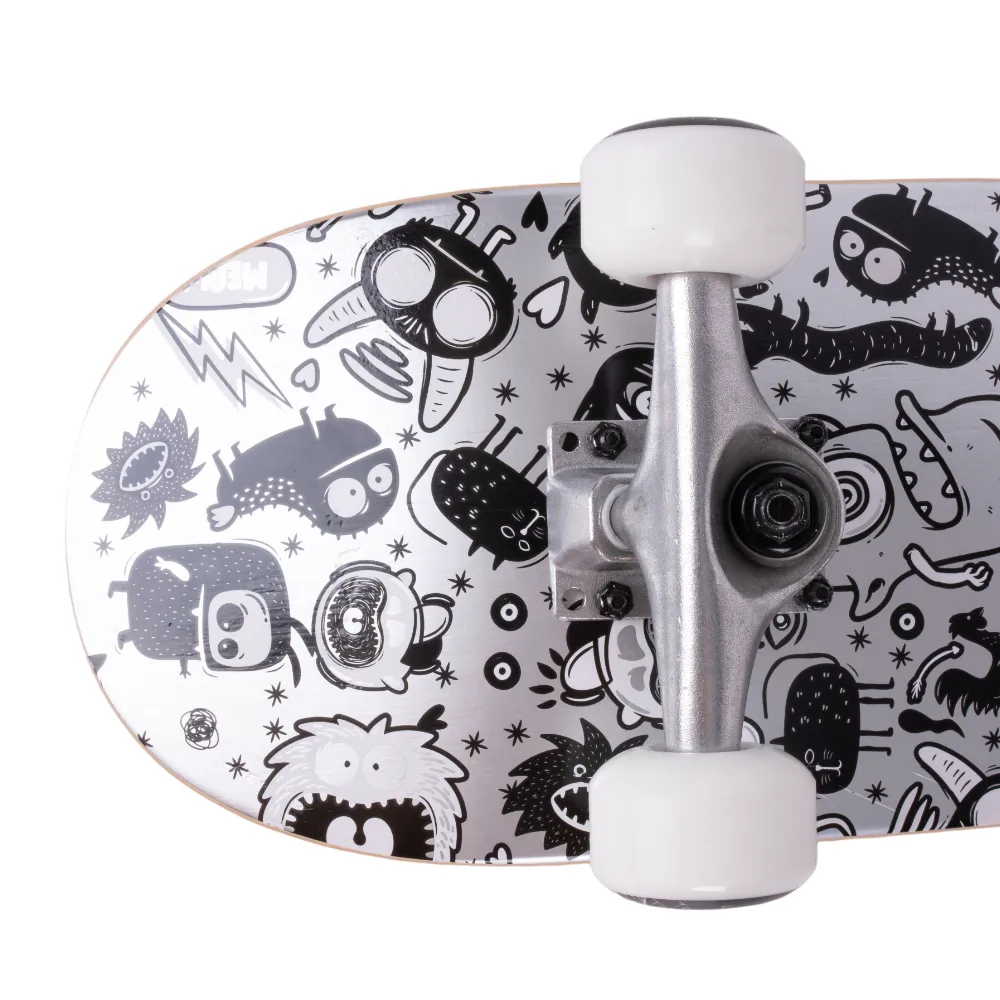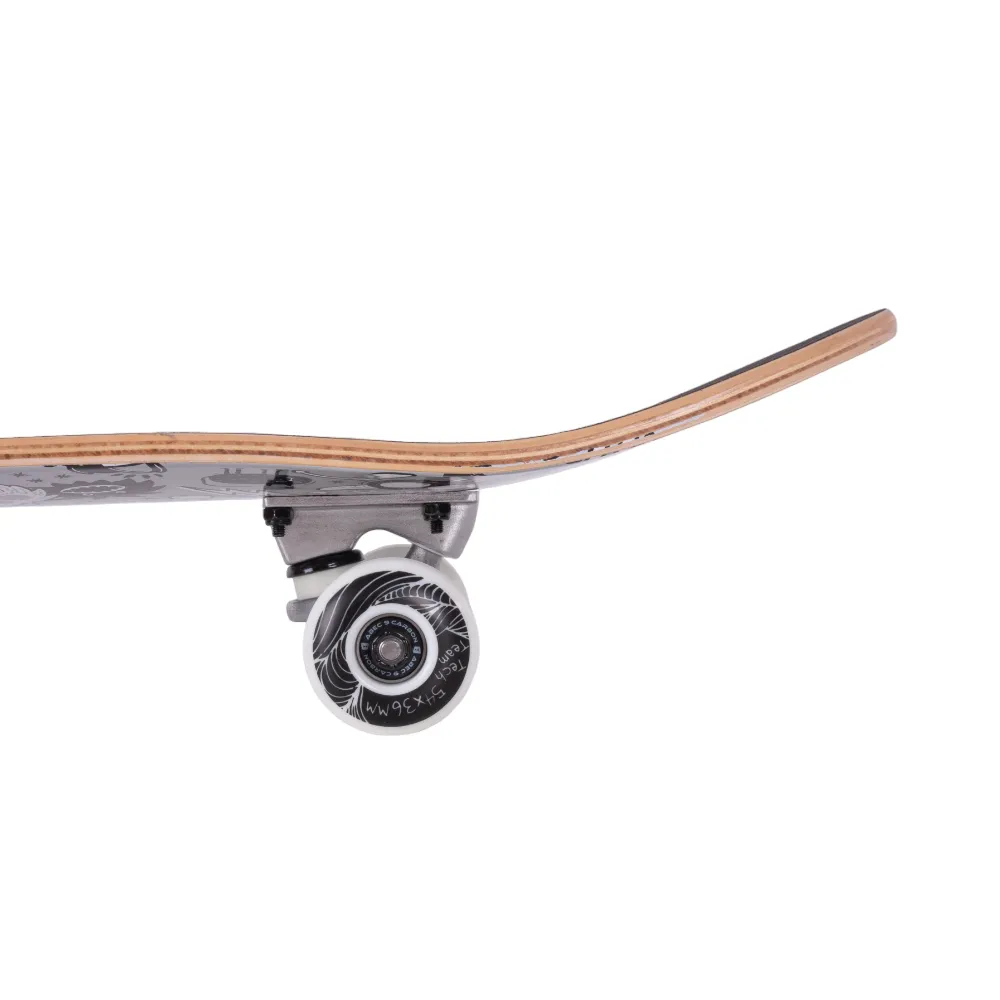 Ощутите свободу катания на скейтборде Aliens 2024 серый от компании Tech Team. Этот брендовый товар создан для тех, кто ценит качество и стиль. Дека выполнена из 7 слоёв русского клёна размером 29.5”х7,5”, обеспечивая хорошую устойчивость на любых скоростях. Колеса PU 54x36 mm с жёсткостью 90А и подшипниками ABEC 9 гарантируют плавное и надёжное катание. Тип деки с двойным концевым загибом (Double Kick) добавляет универсальности для выполнения различных трюков. Необычный дизайн деки в серых тонах с абстрактными персонажами не оставит вас без внимания. Хотите купить скейтборд? Посетите наши сайты, где вы найдете самые выгодные цены и условия доставку. Наши модели скейтбордов - это то, что вы искали!