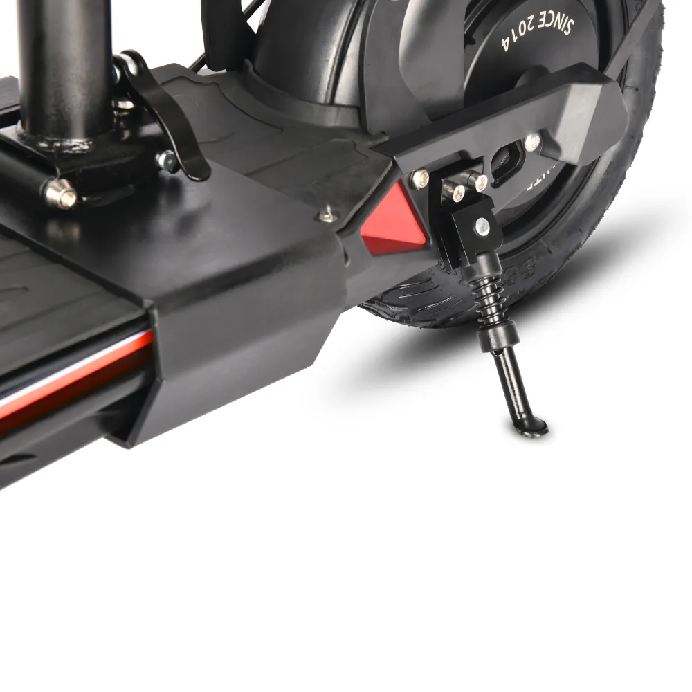 Алюминиевый сплав - это материал электросамоката, он легкий и прочный, в связи с чем его вес всего 23 килограмма, а на борт можно подняться с предельной массой в 125 килограмм. Вы сможете не только самостоятельно кататься, но и перевозить любые вещи, положив их с собой. Электромотор самоката позволит вам достигнуть максимальной скорости в 45 км/ч. Задний привод и надувные колеса с диаметром в 11 дюймов позволят вам передвигаться с максимальным комфортом и чувством защищенности.
