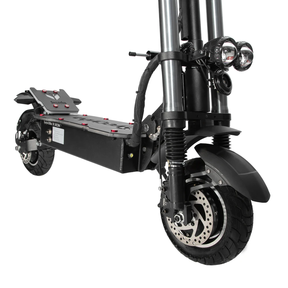 Электросамокат Syccyba R11 Mini 60V 33.6Ah – модель по максимуму наполнена комфортом и удобством. Практичная для повседневного и активного время провождения. Купить технику по лучшей цене, без вмешательства перекупщиков предлагает наш интернет-магазин. Перед принятием решения производитель рекомендует изучить плюсы и минусы, сделать правильные выводы. Модель весом 44,3 кг рассчитана на максимальную грузоподъемность до 150 кг. Подходит пользователям с лишним весом и райдерам, предпочитающим комфорт. Наличие удобного регулируемого седла увеличивает практичность модель. Снимает усталость с позвоночника, исключает дискомфорт. Большая вместительная платформа покрыта нескользящим материалом. Исключает отечность стоп при длительной езде. При максимальной мощности электродвижка в 3360 Вт максимальные скоростные параметры составляют 70 км/час. Запаса хода достаточно для продолжительной езды. Модель оснащена 2 зарядными на 3А, которые находятся в комплектации. Время полной зарядки составляет 6 часов. Гидравлическая тормозная система обеспечивает своевременность остановки. Контроллеры на 28 А – синусные, обеспечивают защиту от межфазного замыкания. Наличие светодиодных фар и жк-дисплея дают возможность езды в вечернее время и непогоду, контроля за техническими параметрами. Удобная подножка позволяет парковаться в труднодоступных местах. Для оформления заказа предлагаем связаться с нашим менеджером.