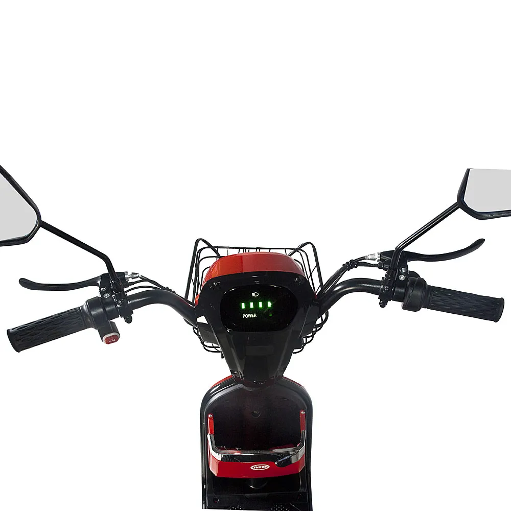Сидение скутера выполнено из мягкой, прочной и долговечной эко-кожи и имеет прямую спинку для удобной посадки пользователя.  На руле установлены анатомические ручки тормоза, кнопки управления светом и переключением скоростей и ручка газа, сделанная из нескользящего материала. В комплекте к скутеру идут зеркала заднего вида, сидение с прямой спинкой для пассажира и корзинка для вещей, выдерживающая до 30 кг.