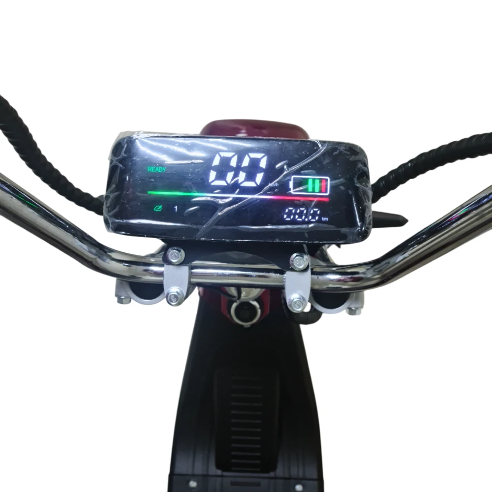 Электроскутер Citycoco GT E30 в красном цвете — это универсальное средство передвижения. С мощностью 3000W и задним приводом, он обеспечивает отличную динамику и маневренность на городских улицах. Благодаря двухколесной конструкции и надувным колесам диаметром 18 дюймов, скутер уверенно держится на дороге, что делает его идеальным для поездок по различным покрытиям.Съемный аккумулятор с напряжением 60V позволяет преодолевать расстояние до 50 км на одном заряде, что делает его идеальным вариантом для ежедневных поездок. Время зарядки составляет всего 5 часов, что обеспечивает быструю готовность к новым приключениям. Кроме того, в конструкции предусмотрено дополнительное место под аккумулятор, что увеличивает возможности автономной работы.Скутер весит 75 кг и может выдерживать максимальную нагрузку до 200 кг, что делает его подходящим для различных пользователей. Дисковые гидравлические тормоза обеспечивают надежную остановку, а большое мягкое сиденье и амортизаторы гарантируют комфорт даже при длительных поездках.Дополнительно, Citycoco GT E30 оснащен бортовым компьютером, зеркалами, звуковым сигналом, фарой и поворотниками, что повышает безопасность и удобство. Большая дека под ноги и прочная конструкция делают поездки еще более приятными.Электроскутер Citycoco GT E30 — это идеальное сочетание стиля, мощности и комфорта для тех, кто ценит удобство и скорость в городской среде.