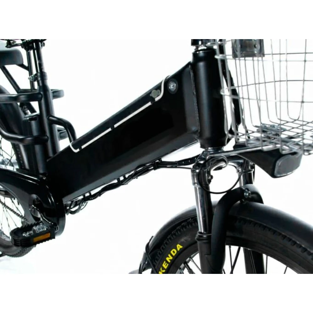 Стальная цельная конструкция рамы считается сравнительно легкой. При общей массе 33 кг общая грузоподъемность составляет 150 кг. Модель оснащена современным электромотором на 500 Вт. При емкости АКБ 13,6А*ч максимальная скорость составляет 45 км/час, а максимальный запас хода 70 км. Аккумулятор размещен в специальном блоке за подседельной частью в специальном блоке, защищающим батарею т воздействия внешних факторов.