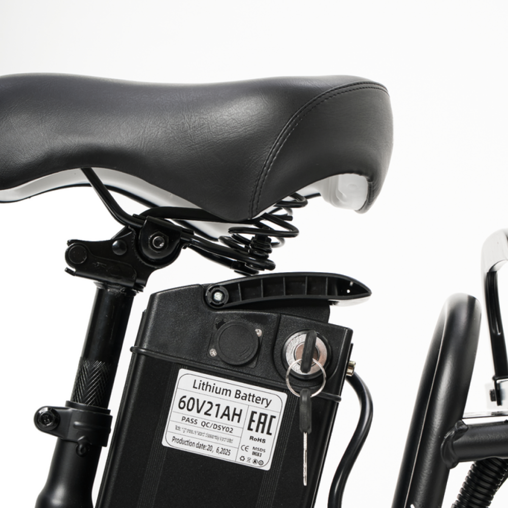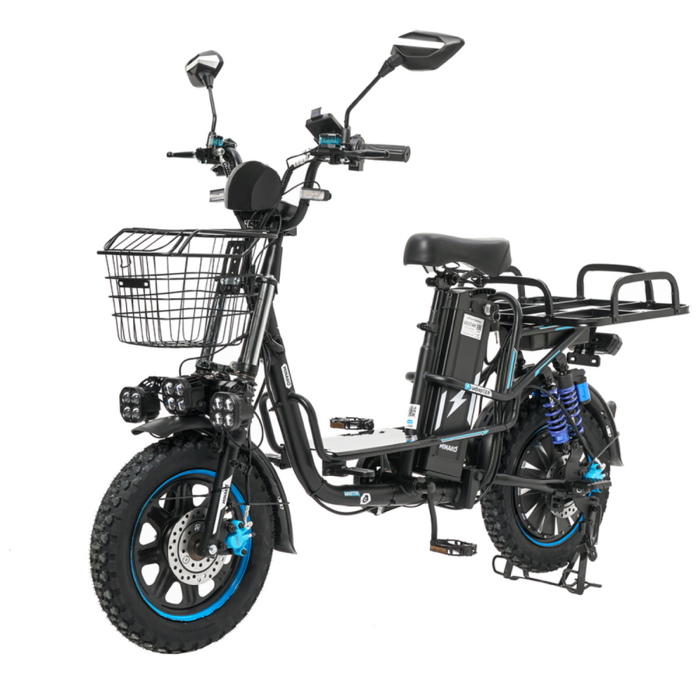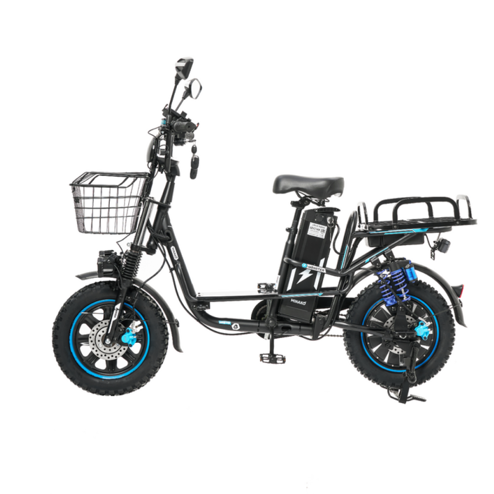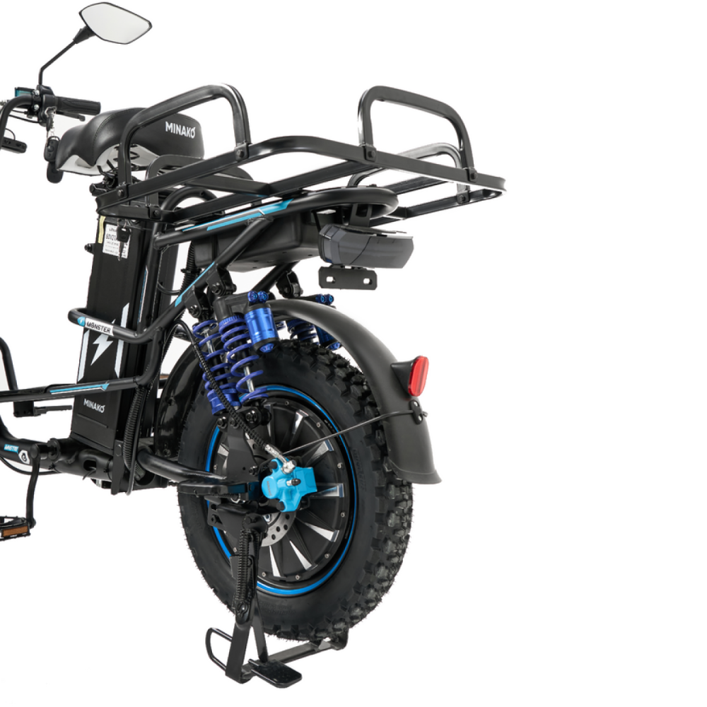 Электровелосипед Колхозник Minako Monster Pro Black — это идеальный выбор для тех, кто ценит скорость и комфорт. С максимальной скоростью до 55 км/ч и пробегом на одном заряде до 70 км, этот велосипед отлично подходит как для городских поездок, так и для загородных маршрутов.С мощным двигателем в 1000 Вт (гравировка 240 Вт), вы сможете легко преодолевать любые преграды. Батарея на основе Li-ion с напряжением 60В и емкостью 21 Ач обеспечивает надежную работу и быструю зарядку — всего 7 часов для полной зарядки.Электровелосипед также способен выдерживать максимальную нагрузку до 150 кг, что делает его подходящим для различных пользователей. Оснащенный гидравлическими тормозами, он гарантирует безопасное остановление в любых условиях.Шины размером 16x3.0 являются всесезонными и бескамерными, что обеспечивает отличное сцепление с дорогой. Задний привод добавляет дополнительную маневренность и стабильность, а общий вес велосипеда составляет 57.5 кг, что делает его достаточно легким и удобным в управлении.Габариты в сборе — 170x115x80 см, а размеры коробки — 142x27x70 см, что упрощает транспортировку. Контроллер на 25 ампер обеспечивает стабильную работу системы, позволяя вам сосредоточиться на наслаждении поездкой.Электровелосипед Колхозник Minako Monster Pro Black — это мощный и надежный транспорт, который позволит вам исследовать новые горизонты с комфортом и стилем!