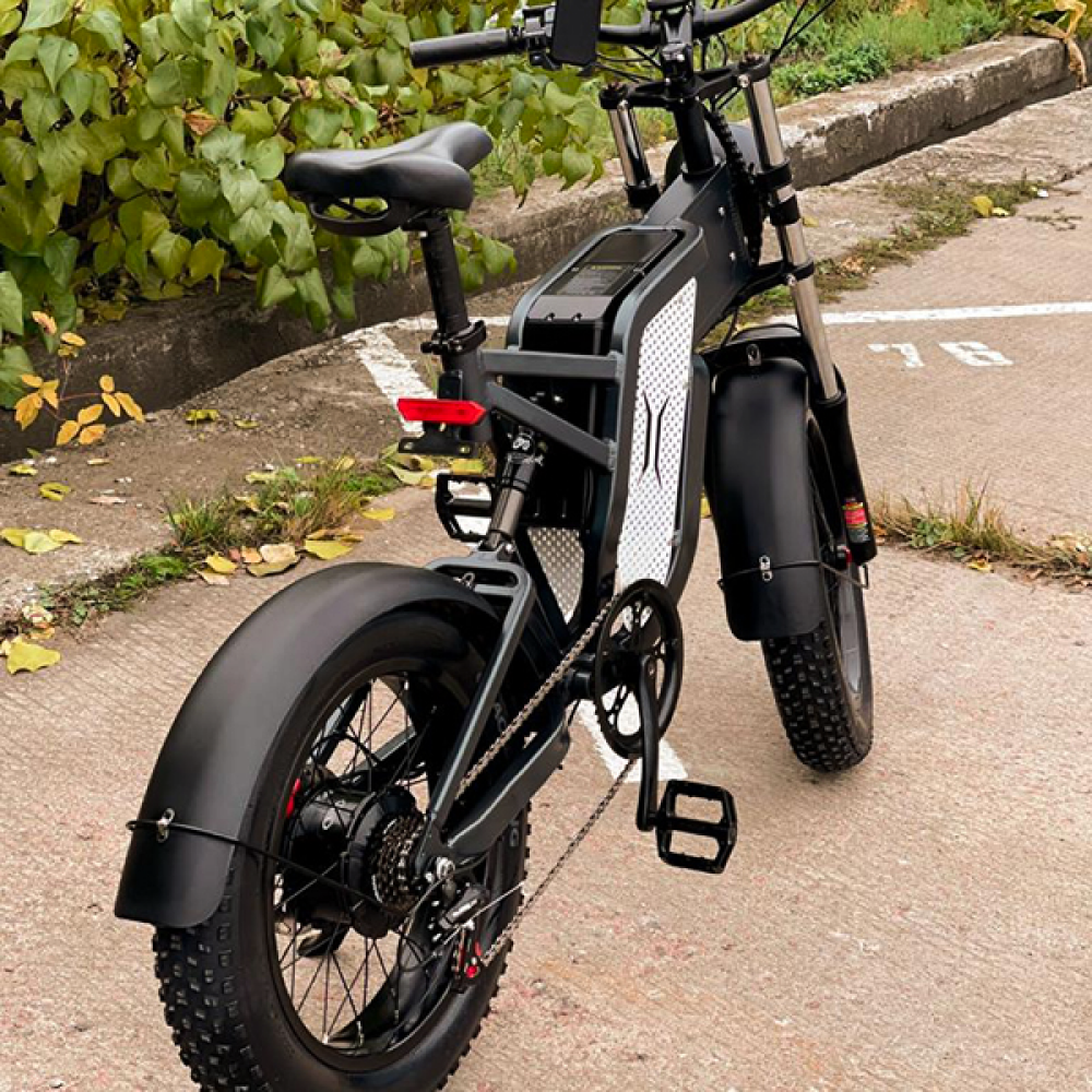 Электровелосипед Syccyba IMPULSE Спицы 20ah –модный скоростной байк занимает лидирующие позиции в сегменте продаж. Востребованная активными ездоками техника. Понравилась лучшими техническими характеристиками, высокими параметрами комфорта. Для приобретения тс предлагаем сделать телефонный звонок менеджеру нашего интернет-магазина. Конструкция рамы выглядит массивно, напоминает мотик. Изготовлена из надежного высокопрочного алюминия, не теряющего первоначальные характеристики при максимальной грузоподъемности до 150 кг. При мощности по 1000 Вт на колесе байк способен развивать скорость до 45 км/час и преодолевать расстояние без дополнительной подзарядки до 45 км. 20-дюймовая колесная часть на спицах в широких покрышках выглядит везде проходимой. Наличие пневматического амортизатора на заднем колесе смягчает езду по неровностям. Информационный компьютер предоставляет информацию о скоростном режиме, протяженности пути и заряде батареи. Комфорт обеспечен эргономичны компактным седлом, регулируемым по ростовым параметрам райдера. Своевременность остановки обеспечена гидравлической тормозной системы. Удобство парковки – выдвигающейся подножкой.