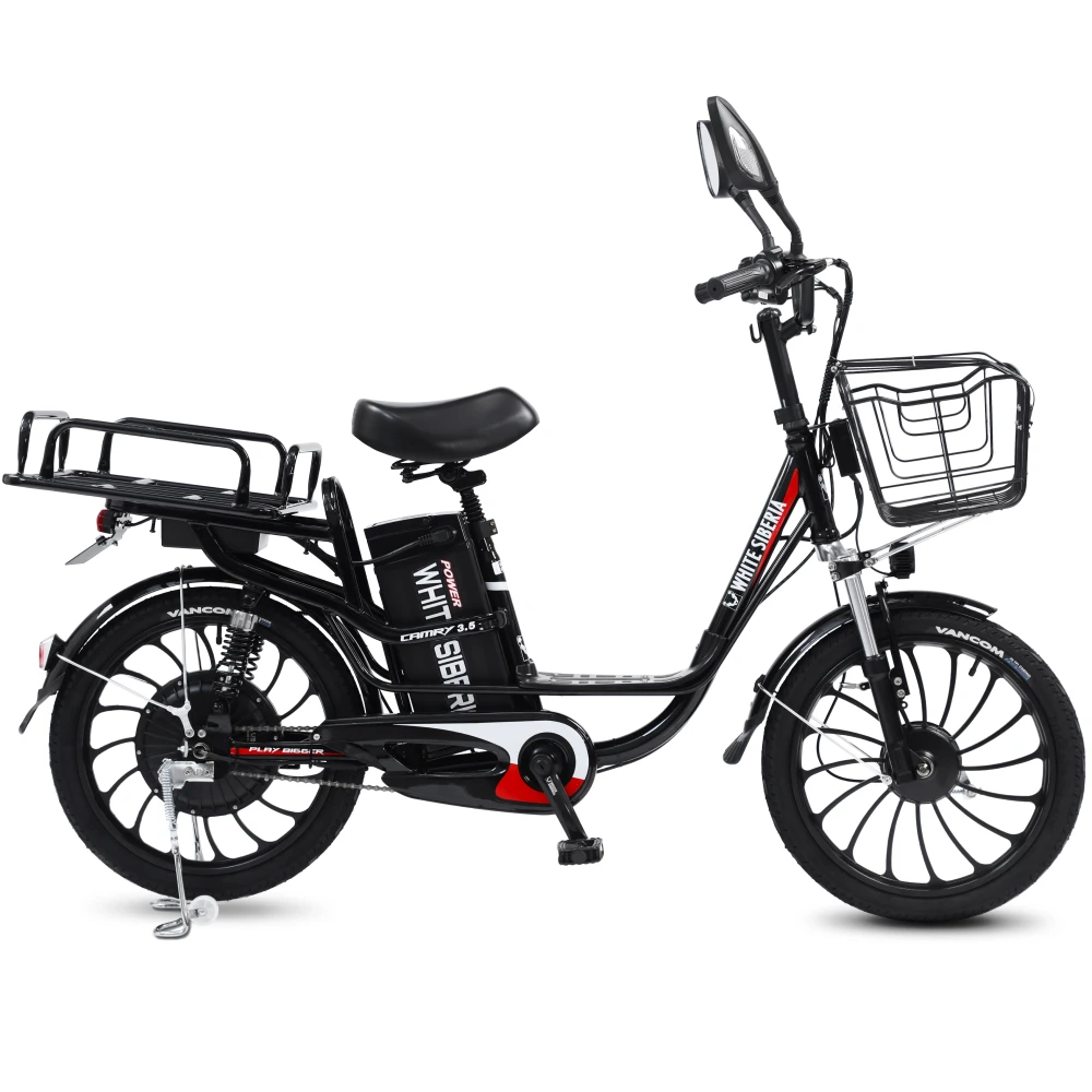 Электровелосипед WHITE SIBERIA CAMRY 3.5 1200W это новинка один лучших велосипедов разработанный по европейским стандартам от производителя white siberia. Это топовая модель электровелосипеда отлично подходит для повседневного использования, также отлично подойдет для курьеров. Электровелосипед camry 3.5 сочетает в себе мощность, стиль, комфорт и безопасность. Мощность двигателя на модели camry 3.5 составляет 1200W, который разгоняется до 45км/ч. Также электровелосипед оснащен вторым комфортным, съёмным сидением, что позволит кататься с комфортом. Максимальная нагрузка на модель составляет до 200 кг, при своём весе всего в 45 кг. Запас хода у электрвелосипеда camry 3.5 состовляет до 60 км, при этом заряжается он всего за 5-6 ч. Также модель имеет качественные LED фары, которые ярко освещают дорогу в темное время суток. Электровелосипед camry имеет задний привод, для более удобного вождения. Купить Электровелосипед white siberia 3.5 1200W по выгодной цене, а также аксессуары для вашего велосипеда можно на нашем официальном сайте интернет-магазина.